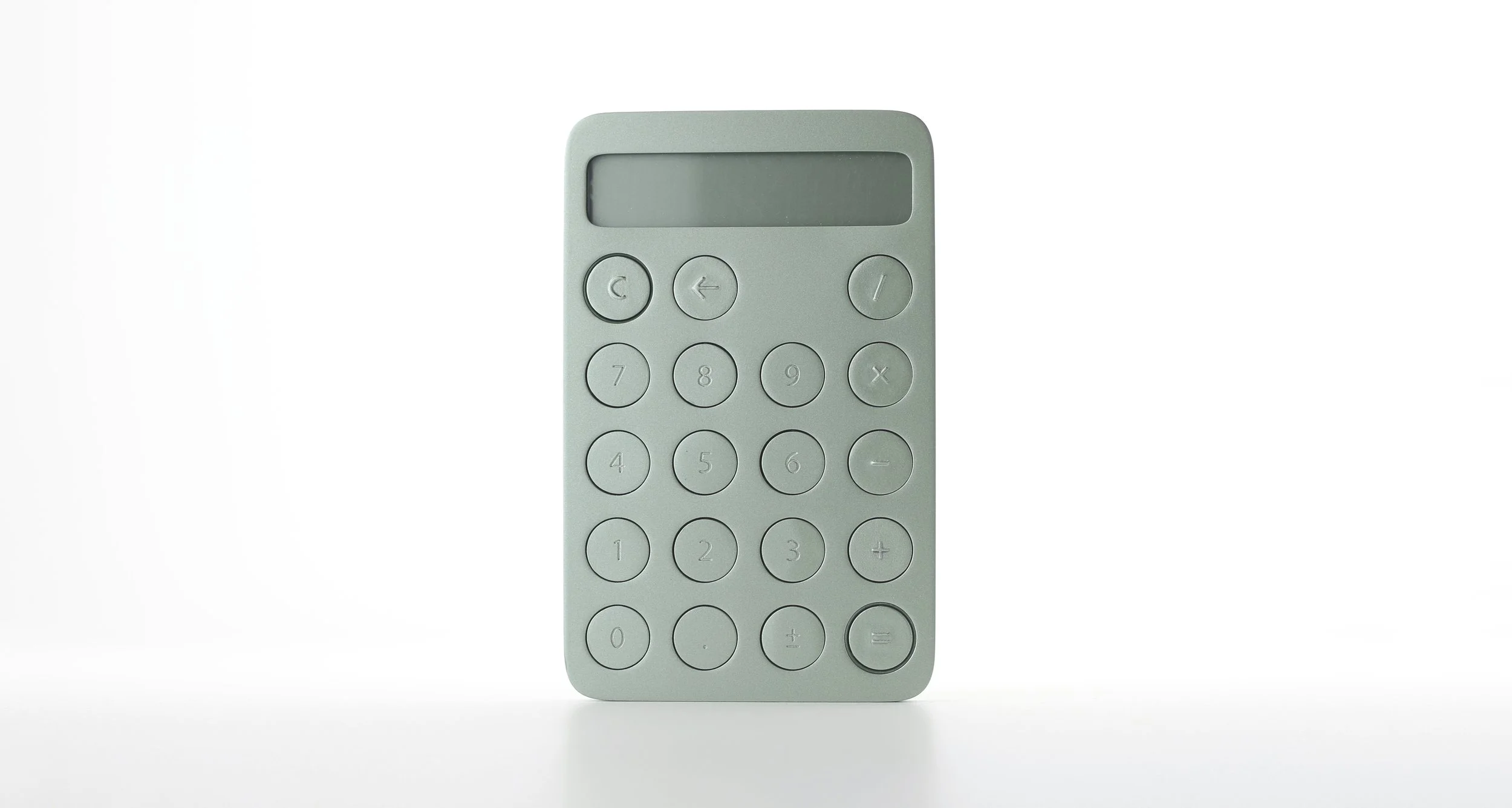 Midtone aims to be a calculator that seeks as little visual attention as possible. The design blends LCD display and main body together by using pigeon gray color. This LCD matching color which gives the product its name, Midtone, is a move to bring a silence to the object by assigning a monochromatic look to it.